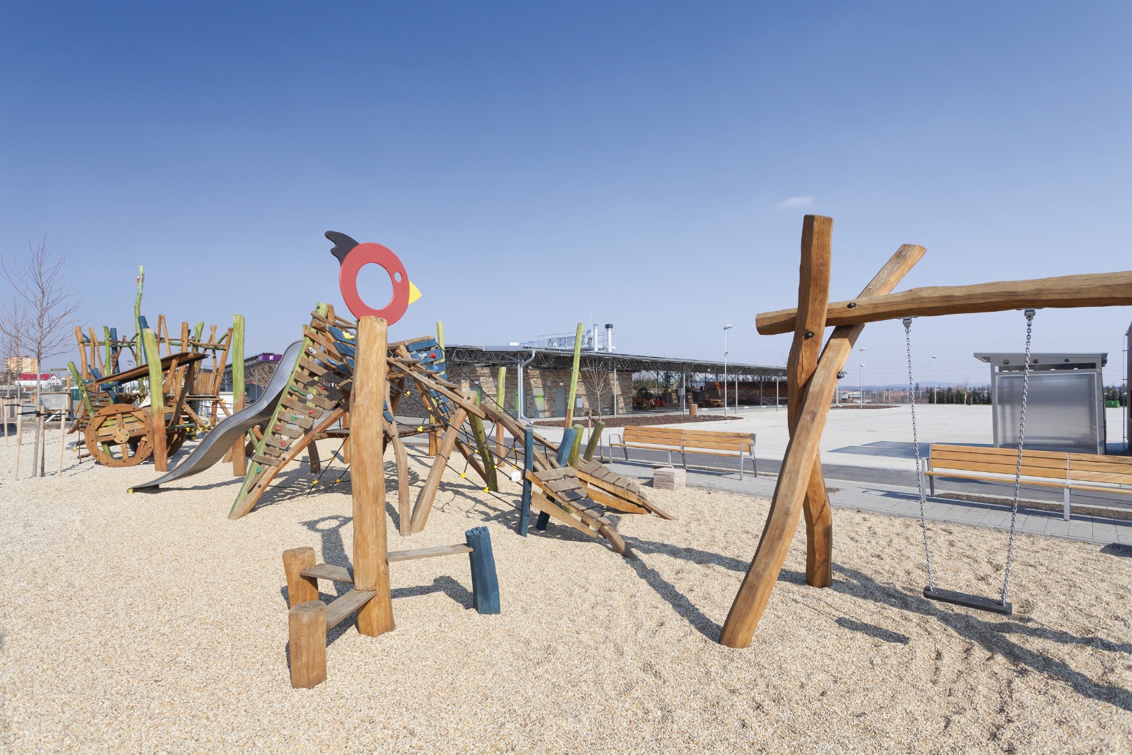 Venkovní posezení - krytá terasa s provozním objektem s kuchyní a výčepem, hlediště pro sedící diváky, dětské hřiště, moravská zahrada, provedena zpevněná betonová plocha a výstavba parkoviště pro osobní automobily.