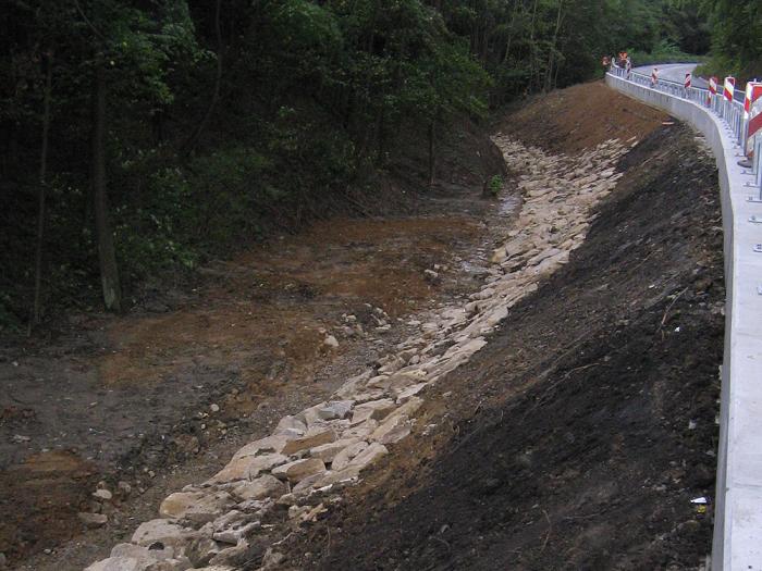 Zajištění stability svahu sil. II/490: Kudlov pilotovou stěnou + zpevnění břehu místního potoka