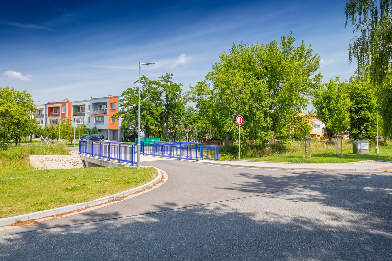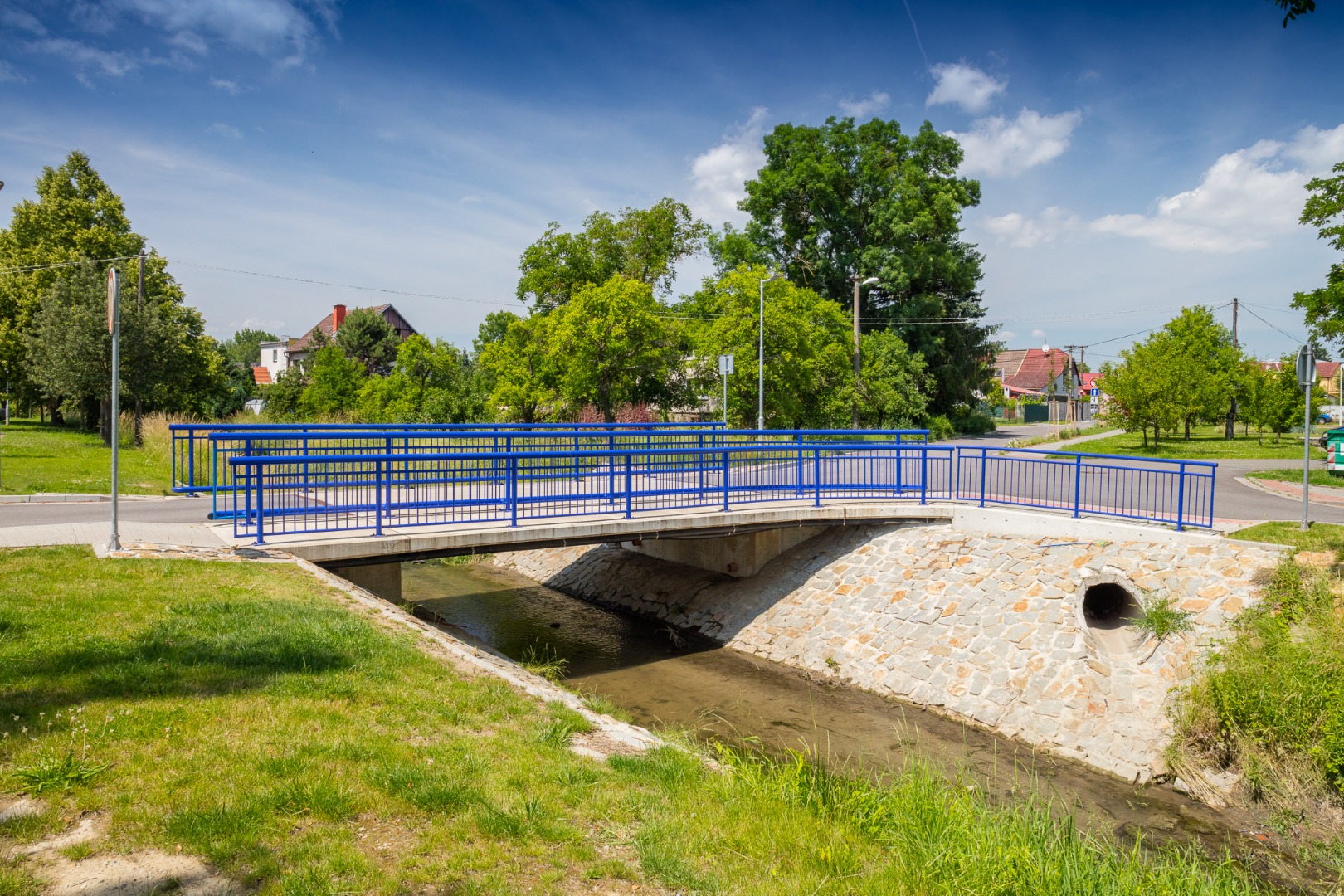 Nový most přes Kudlovický potok a komunikace k němu.
