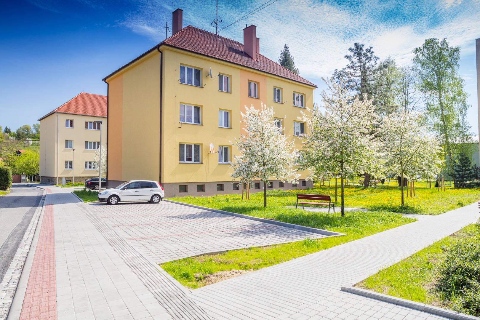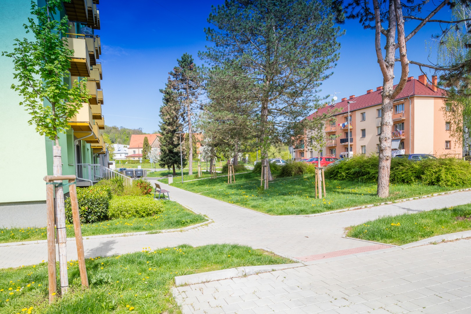Rekonstrukce sídliště - chodníky, cesty, parkoviště, plochy pro kontejnery, lávka přes Čaminský potok.
