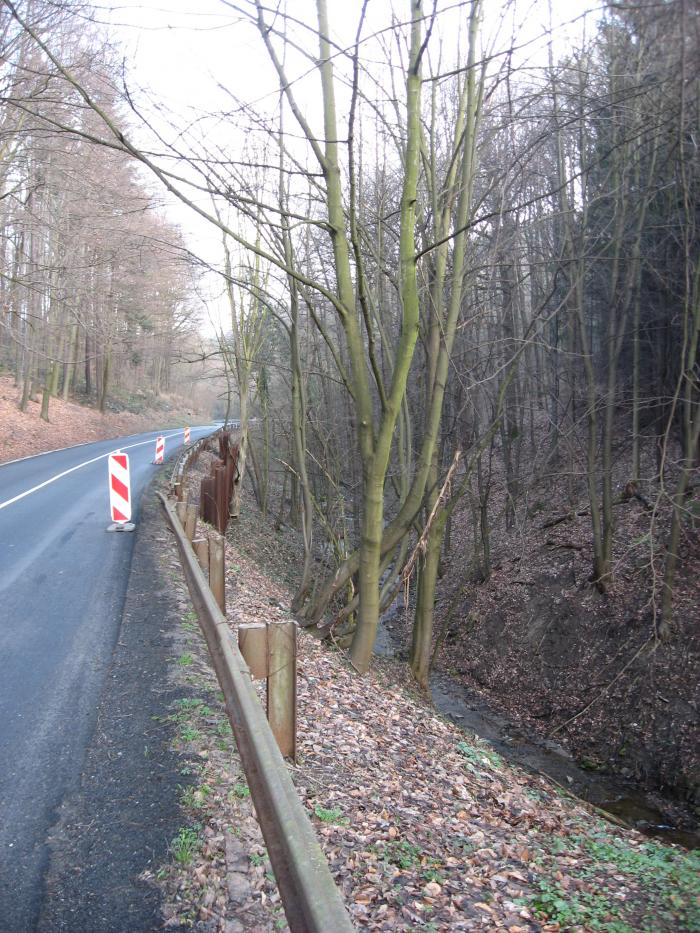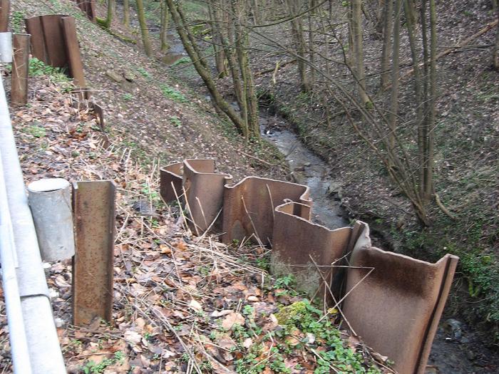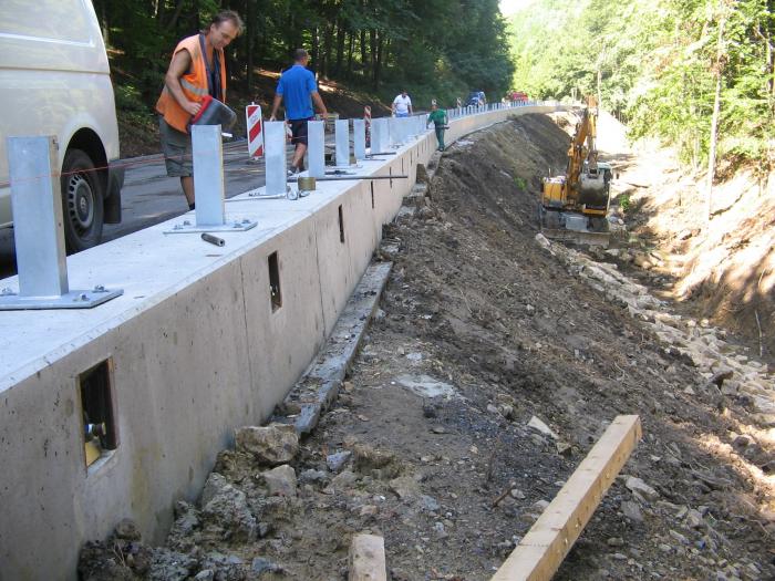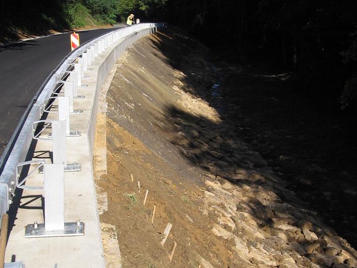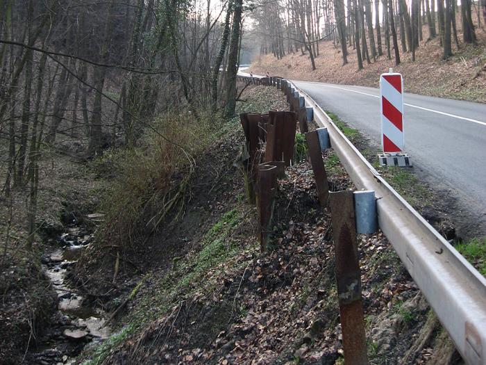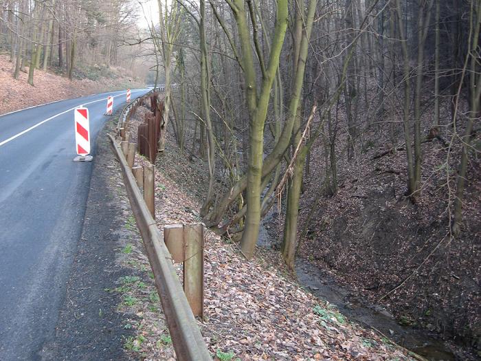 Zajištění stability svahu sil. II/490: Kudlov pilotovou stěnou + zpevnění břehu místního potoka