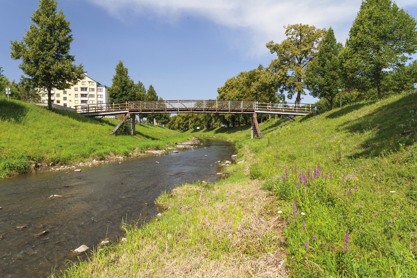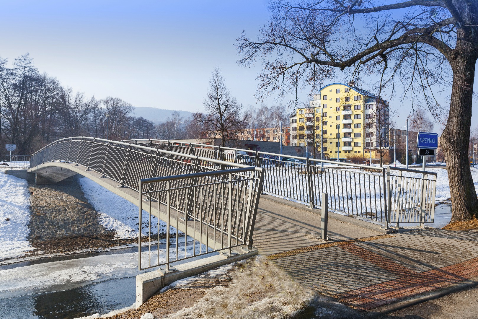 Stavba řešila náhradu třípolové lávky novou jednopolovou lávkou ve stejné poloze.