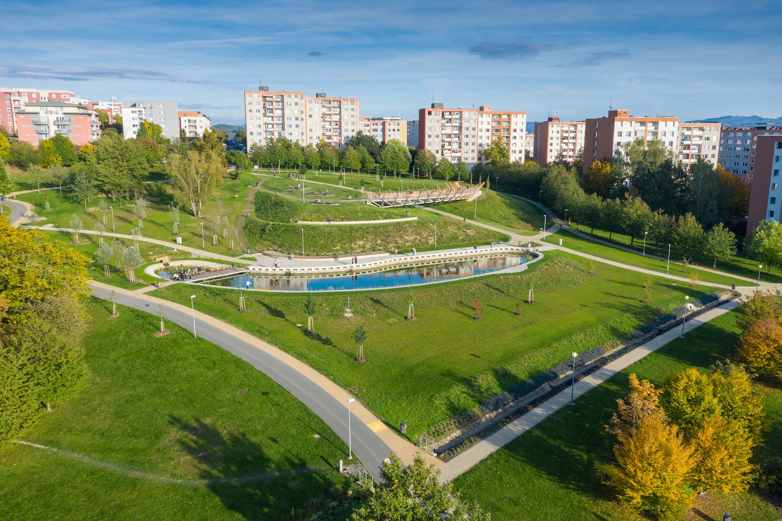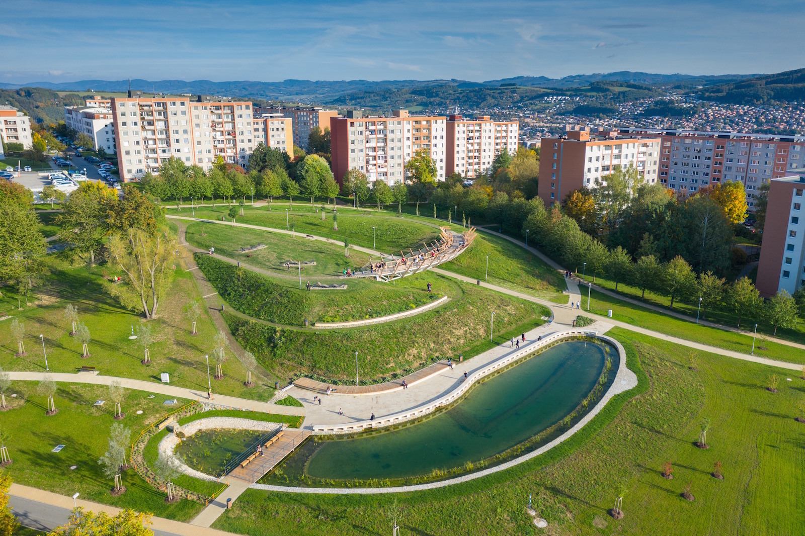 Parkové úpravy plochy včetně vybavenosti pro rekreační pohybové aktivity a pro využití srážkové vody pro zlepšení mikroklimatu území.