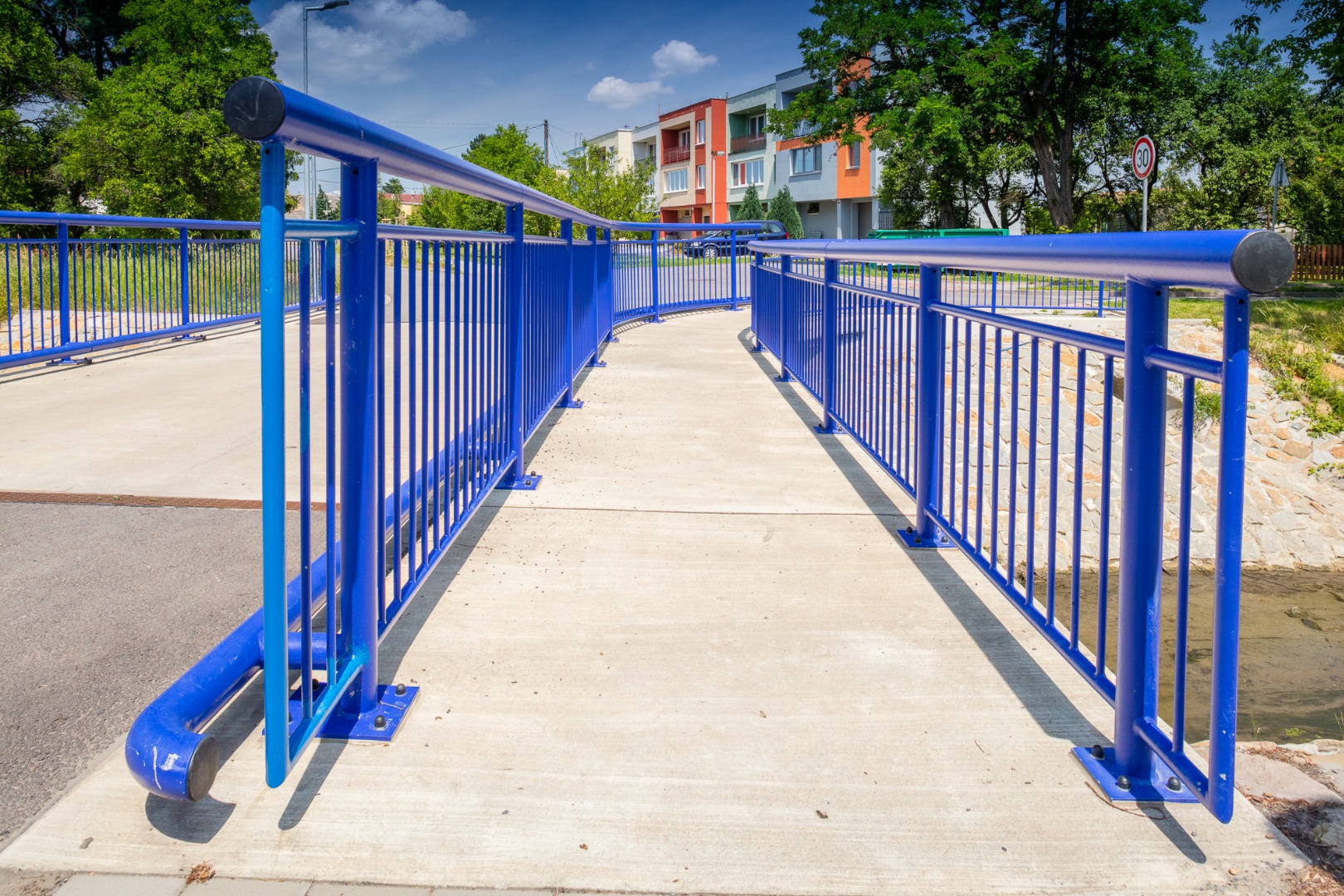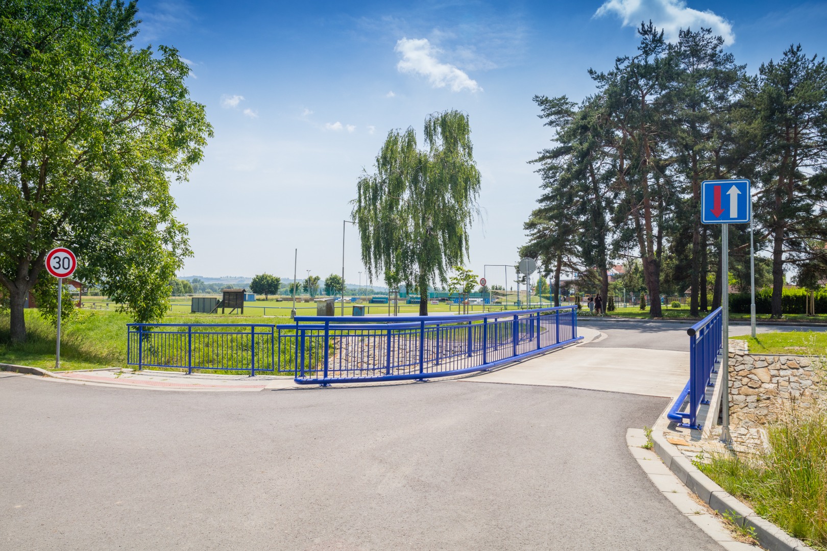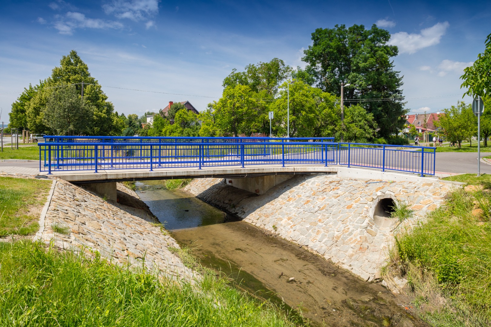 Nový most přes Kudlovický potok a komunikace k němu.