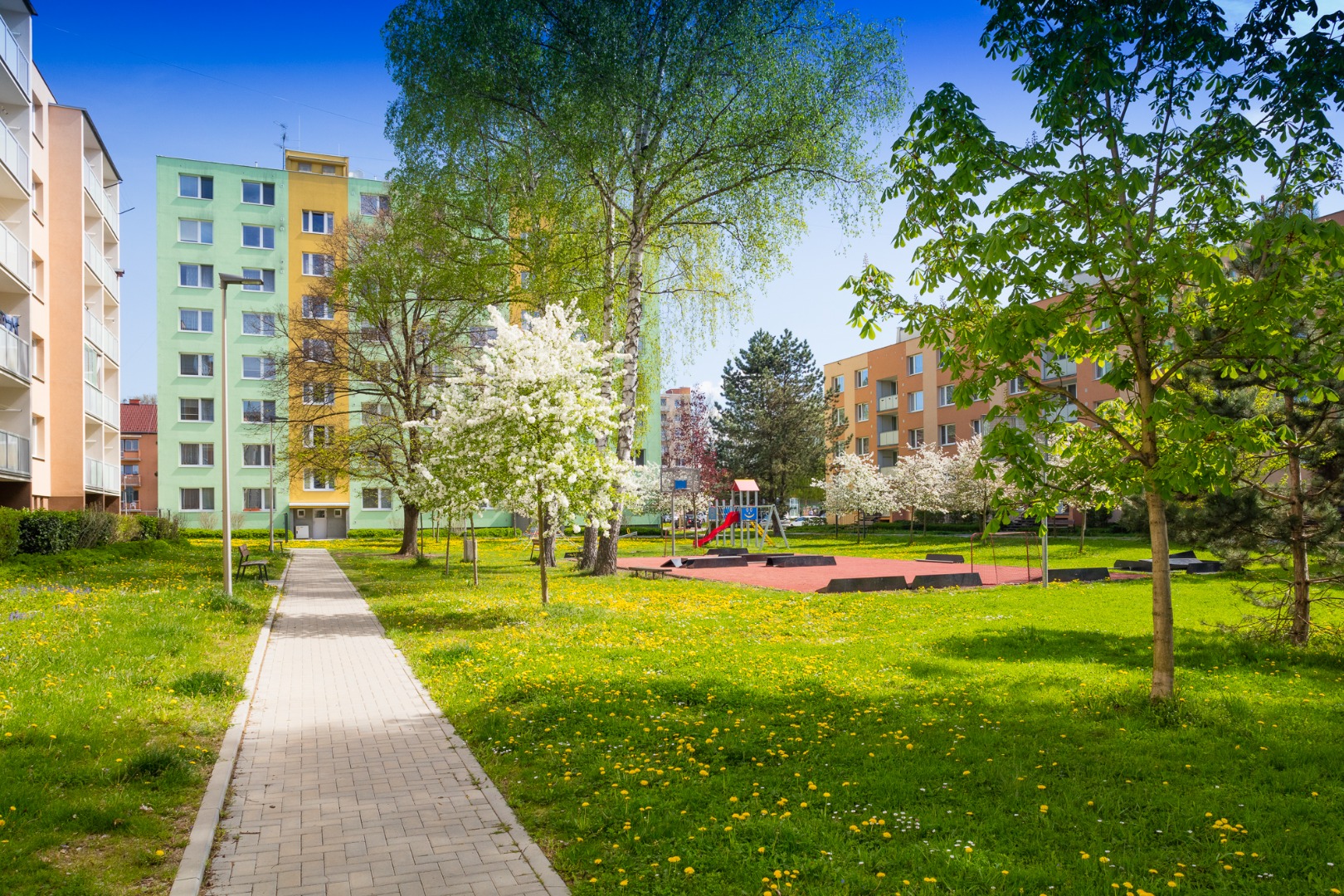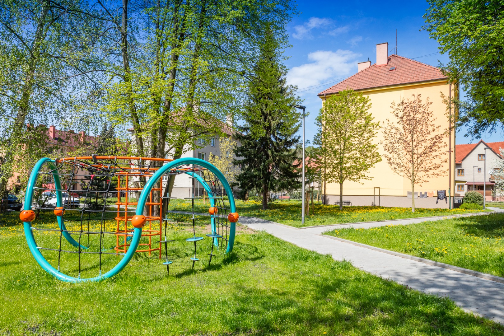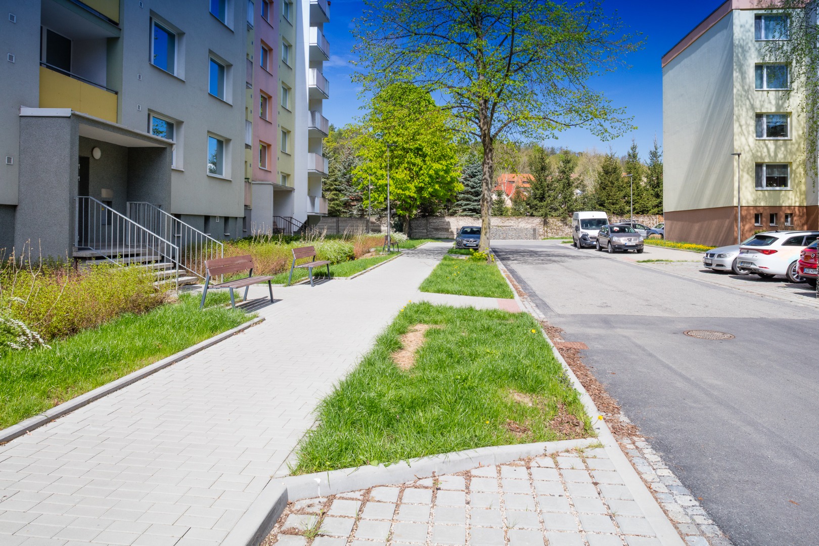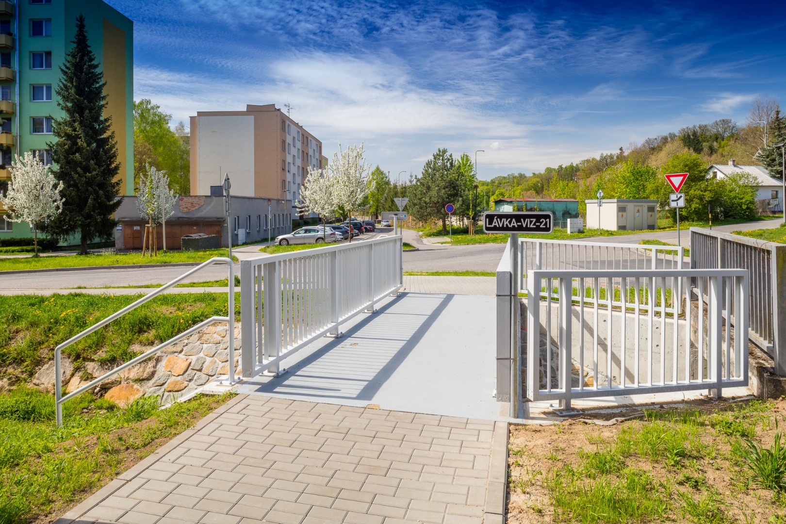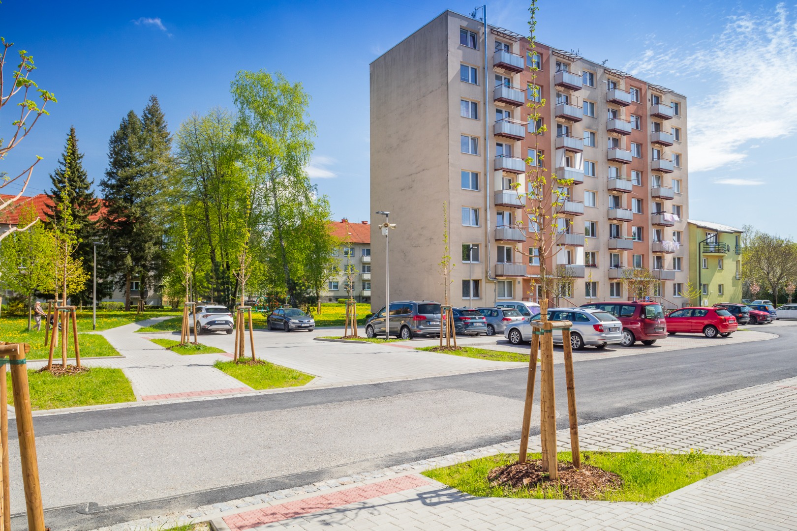 Rekonstrukce sídliště - chodníky, cesty, parkoviště, plochy pro kontejnery, lávka přes Čaminský potok.